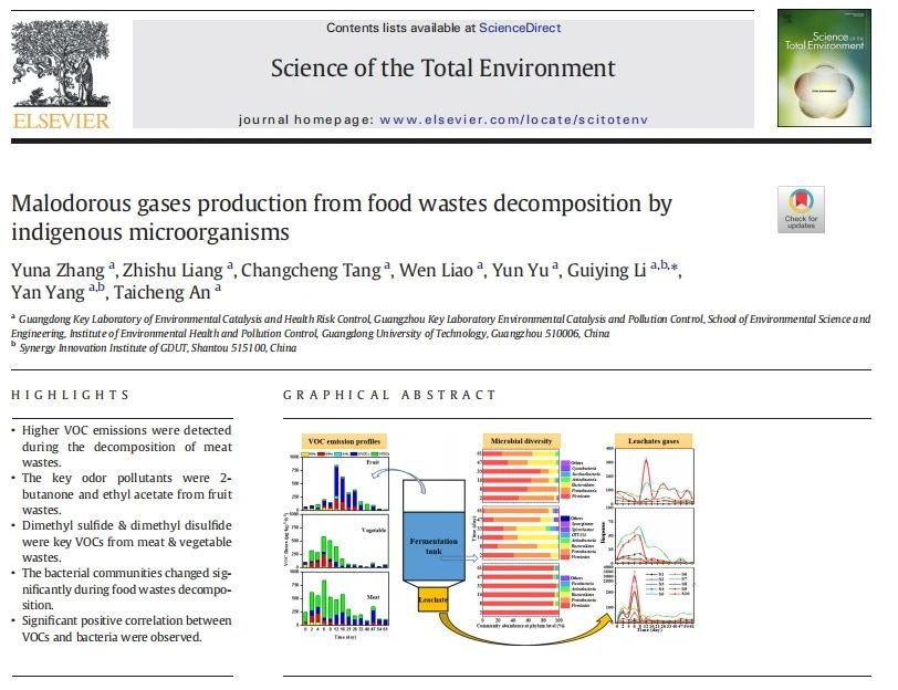 文章来源:广东省环境催化与健康风险控制重点实验室《Malodorous gases production from food wastes decomposition by indigenous microorganisms》