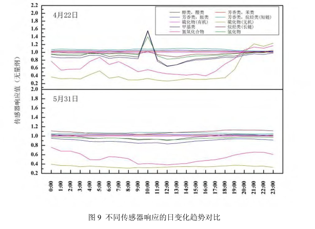 (2) 利用上述建立的电子鼻臭气浓度反演曲线, 对位于某工业区下风向的敏感区域环境大气中恶臭气体进行了监测分析, 结果表明, 无机硫化物、 甲基类、 醇类醛类、 烷烃类、 氢化物五类物质对该站点的影响较大。
